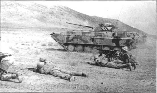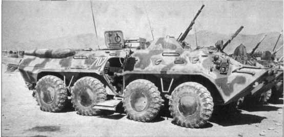 БТР-80 десантной разведроты. Несмотря на более современную конструкцию «восьмидесятки», многие больше ценили БТР-70, имевшие тоже вооружение из спарки 14,5-мм пулемета КПВТ и 7,62-мм ПКТ и такую же противопульную бронезащиту, но выгодно отличавшиеся силовой установкой из двух 120-сильных двигателей. Спарка двигателей считалась более надежной и живучей, позволяя при отказе или попадании в один из моторов вытянуть машину оставшемуся.