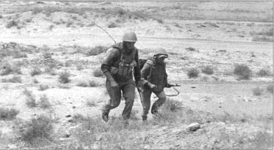 Радист разведгруппы, забравшись повыше для лучшего прохождения сигналов, ведет связь с базой. Каждой группе вручалась своя программа связи, включавшая определенный позывной, частоты и время выхода в эфир. В комплект взводных средств связи обычно входили радиостанции Р-143 и «Ромашка» для вызова вертолета, работавшая на авиационных каналах. Помимо них, свои портативные рации Р-147 имели взводный, замкомвзвода и командиры отделений.