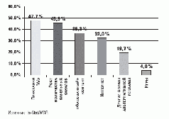 Исследовательская компания In-Stat/MDR провела опрос представителей рекламного сообщества и попросила их оценить важнейшие угрозы телевизионной рекламе. На рис. III.1 представлены их ответы, ранжированные по частоте. Респонденты указали на такие угрозы, как реклама по требованию, кабельное телевидение, DVD, Интернет и непонятные «другие формы альтернативной рекламы» и игры.