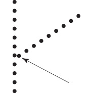 На рисунке ниже мы рассматриваем точку, к которой направлена стрелка, как часть диагональной линии, хотя на самом деле она ближе к вертикальной. Мы обычно игнорируем взаимоотношения точки с вертикалью и считаем ее лишь продолжением диагонали. Это иллюстрирует принцип общей судьбы: события, которые кажутся продолжением друг друга, чаще рассматриваются как целое, чем как отдельные случаи.