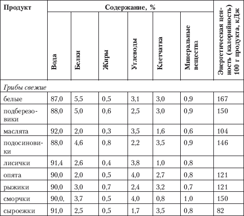 Информация о пищевой ценности грибов представлена в табл. 2.3.