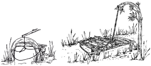 Рис. 2.6. Подпружиненные силки могут ловить животных и птиц как за конечности, так и за шею