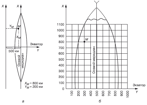 Рис. 6.15. Система прямоугольных координат на топографических картах: а – одной зоны; б – части зоны