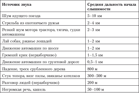 Таблица слышимости различных звуков