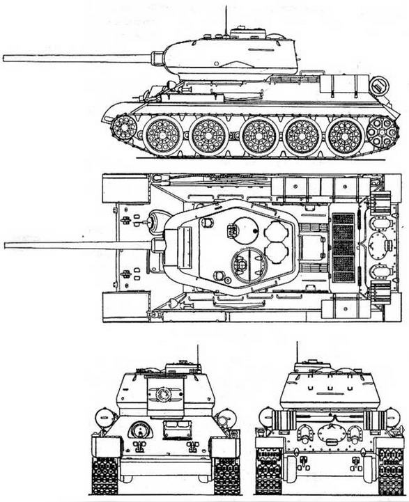 ДВИГАТЕЛЬ: В-2-34,12-цилиндровый, дизельный, четырехтактный, V-образный, жидкостного охлаждения; мощность 400 л.с. (294,5 кВт) при 1700 об/мин, рабочий объем 38 880 см^3.