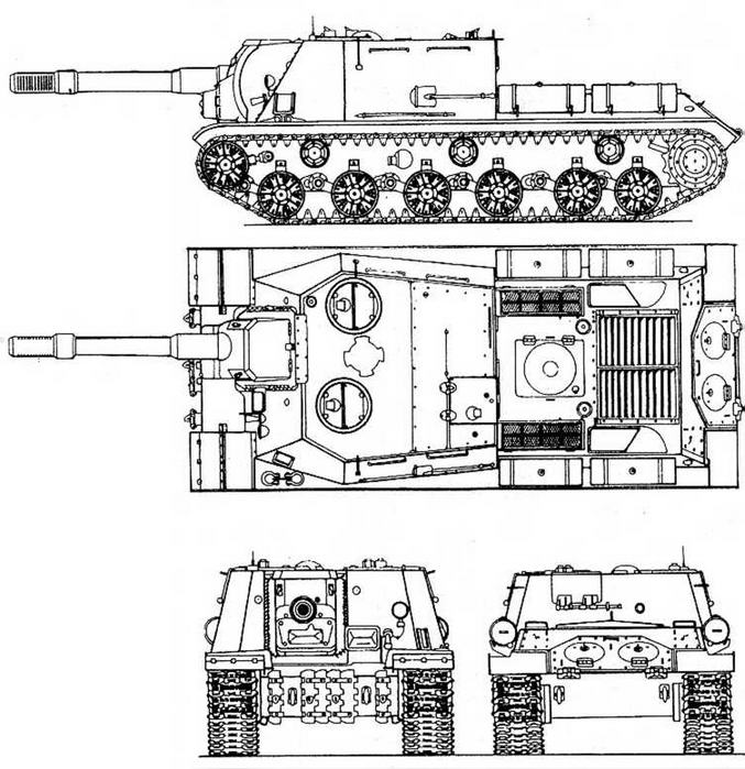 ИСУ-122С (ИСУ-122-2, объект 249) — 122-мм пушка Д-25С обр. 1943 г. с клиновым затвором. Габариты 9950x3070x2480 мм.