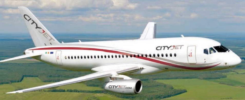 Так должны выглядеть «суперджеты», которые уже в следующем году могут начать летать в ирландской авиакомпании CityJet. Внизу - интерьер салона будущих «ситиджетовских» SSJ100