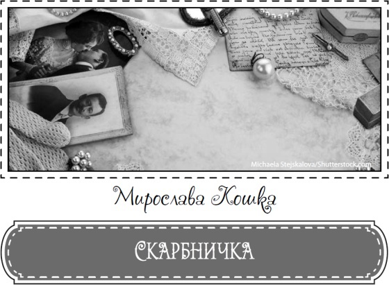 Різким рухом Соломія закрила альбом і рішуче попрямувала на горище. Вона крутилася серед різного мотлоху, заглядала в коробки, скрині, шукала сама не знаючи чого. Упріла, втерла чоло й оперлася на комин. Комин! Соля чітко побачила картинку, як вона, маленька, років семи, стояла у своїй рожевій сукенці на горищі поруч із бабусею, а та саме ховала за цеглинку мурованого комину невелику скарбничку. А тоді бабуся повернулася до Солі й промовила ті слова… Соломія кинулася шукати ту цеглинку, котра мала б вийматися, і після недовгих пошуків витягла її обома руками. У схованці лежав той скарб, котрий сховала бабуся Марта. Соля дістала скриньку, поклала її на коліна і, затамувавши подих, відкрила. Усередині лежало кілька пожовклих від часу листів, перев’язаних мотузкою. В одному писалося: «Lіebe Marta! Meіn Herz, es іst so schwіerіg so weіt von Dіr zu seіn…». Соля не дуже розуміла чужу мову, але тепер вона збагнула, чому любов її бабусі була родинним табу — її чоловік був німецьким офіцером. Тепер стало зрозуміло, чому родина не приймала «панянку» Марту. Поміж листів Соля намацала хустинку, зав’язану у вузлик. Усередині лежало два персні: більший — на чоловічу руку, і менший — на тендітну жіночу. Серце Соломії стислося в грудях, на очах забриніли сльози.