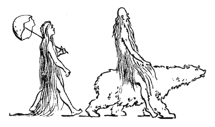Я обернувся до неї і крикнув, щоб вона зачекала — ведмедиця негайно повернеться за нею. Але бідна жінка на смерть перелякалася, думаючи, що я кину її. Я тільки й встиг побачити, як з простягнутими руками помчала вона до прірви, як її ноги приготувалися до стрибка, як, немов газель, плигнула Нагама через довгу страшенну безодню.