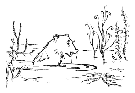 З озера, на мій превеликий подив, замість уже раз пофарбованої в синій колір ведмедиці, випливла червона. Та цю червону фарбу Бебі миттю струснула з себе.