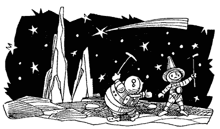 — Ну, з чого ми почнемо свою діяльність на Місяці? — спитав Незнайко, перестаючи обійматись. — Я пропоную зробити вилазку з ракети і як слід роздивитися довкола.