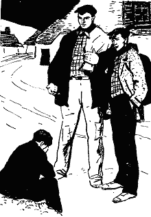 Біля придорожнього стовпа з написом “Люсене, 1 км 700 м” на купі жорстви сидів П’єро і, затуливши обличчя руками, гірко плакав. Отже, й поліція на боці злочинців, чого ж тепер чекати? Втікаючи від комісара, П’єро опинився за кілька кілометрів од Отена, в зовсім не знайомій місцевості. Він лишився самотній… І хоч хлопця охопив відчай, його воля була не зломлена. “Я мушу помститися за батька і врятувати Клемана Лотера”, — повторював він собі. Потім знову сум огорнув його серце, і хлопець не зміг стримати сліз.