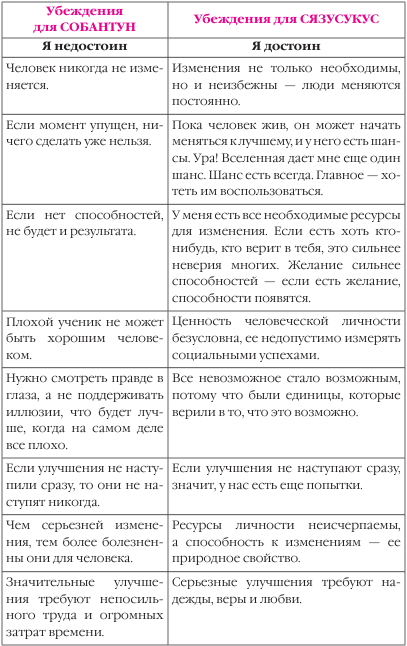 Итак, человек СЯЗУСУКУС формируется через убеждение «Я достоин». А человек Слабый, Ординарный, Болезненный, Апатичный, Неуверенный, Трусливый, Усталый и главное – Несчастливый (СОБАНТУН) формируется через убеждение «я недостоин».