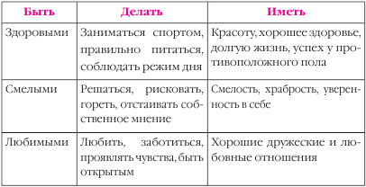 Пусть напишет или нарисует, сделает коллаж, вырезая картинки той жизни, о которой он мечтает, из глянцевых журналов, наклеивая их вместе со своими фотографиями на лист ватмана. Пусть повесит этот ватман – карту сокровищ и ценностей – над рабочим столом в своей комнате и сверяет с ней свою жизнь, как по компасу.