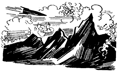 Добров вів ракету до берега морської затоки. На обрії курилися вулкани. Гостроверхі конуси викидали фонтани диму, що розпливався парасольками.