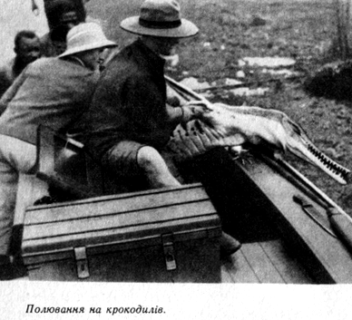 Моє терпіння витримало суворий іспит, але врешті воно було винагороджене. Повний місяць світив так ясно, що я міг би навіть читати. Та я думав тільки про окапі. В сильний цейсівський бінокль я оглядав місцевість. Навколо мене гули москіти, іноді чути було тріск гілок під ногами якогось звіра, що йшов до водопою. Ось на березі з'явилося стадо свиней; вони бабралися в болоті, а на них уже чатував кровожерний нічний розбійник — леопард. Неподалік від них показалося кілька слонів. Раптом переді мною спалахнув бій: леопард плигнув на свиню, оточену поросятами, і вона намагалася проткнути хижака іклами. Удар лапою вирішив усе — хоробра мати загинула. Нещадна боротьба за існування серед розкішних джунглів! Перемагає дужчий.