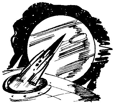 Розімкнулись і розсунулись стіни. Набираючи ходу, ракета проскочила шлюз. Рубку обійняла темрява, в прозорій бані промайнули ребра естакади — і, викинута могутнім магнітним полем, ракета ковзнула у простір.