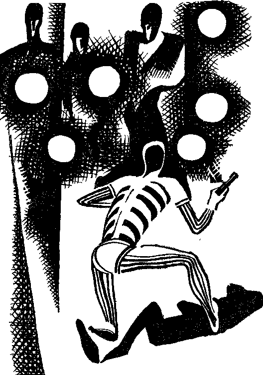 Начальник струснув головою, гостро глянув на карників, і вони одразу ж кинулися до Миколи. Микола випередив їх, дістав із кишені циліндрик і спрямував його на карників.
