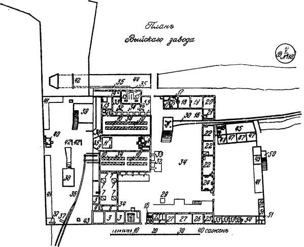 Фиг. 15. План Выйского завода с нанесенной на нем рельсовой дорогой Черепановых, (см. поз. 36).