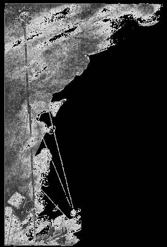 Жиленко прихватил себя кожаным поясом к мачте и стал взбираться. Уже на ходу товарищи набросили ему на шею тюк тонкого линя.