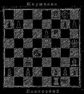 Своим третьим ходом белые, вероятно, имели намерение продолжать Лс5—с7 и Фg5— е7 или Фg5—е5, но они совсем не ожидали (да и кто мог ожидать!) хода черных.
