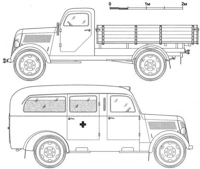 Чертежи грузовика и армейской санитарной машины на базе Granit-1500