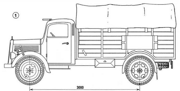 Лёгкий газогенераторный грузовик L1500E Holzvergaser работал не на бензине, а на древесных чурках. В его газогенераторе, установленном позади кабины, происходило термическое прокаливание чурок с добавлением воды, в результате чего образовывался так называемый «генераторный газ», который и поступал в качестве топлива в двигатель. Это был 6-цилиндровый двигатель мощностью 40 л.с., рабочим объемом 2,229 л, позволявший развивать скорость до 65 км/ч.