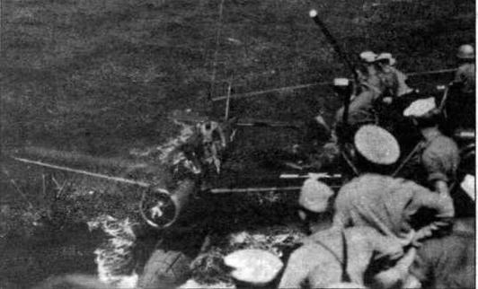 Подъем самолета-разведчика на борт линкора "Миссури" (фото из архива К.Золотова).