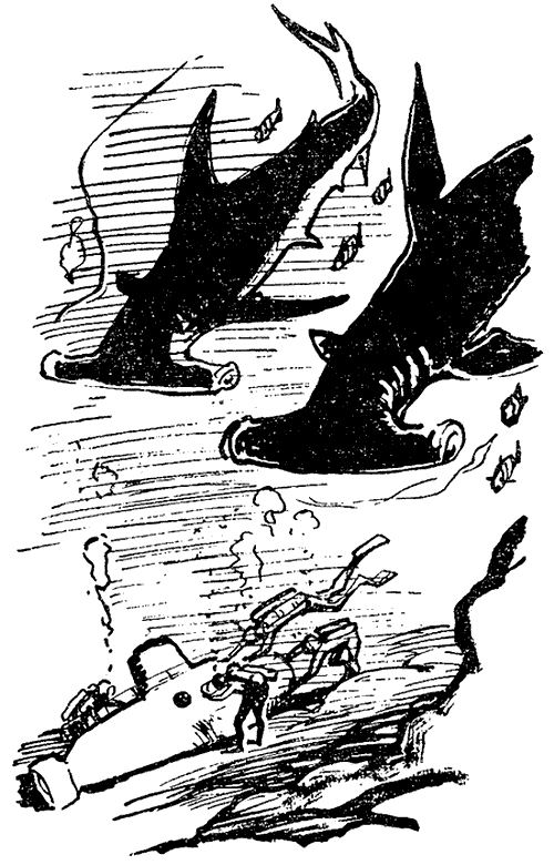 Я поднял голову — и обмер. Прямо на нас неторопливо плыли три рыбы-молота!