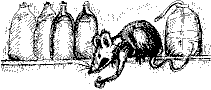Крысак злобно сверкал глазами на непрошеных гостей, свесившись с верхней полки, где он прятался за большой банкой сидра. Из горлышка банки торчал конец резинового шланга, опущенного туда Крысаком, чтобы посасывать сидр, лежа на спине и поплевывая в потолок.