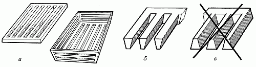 Рис. 9. Колосниковые решетки: а – корзинка; б – правильное положение решетки; в – неправильное положение решетки