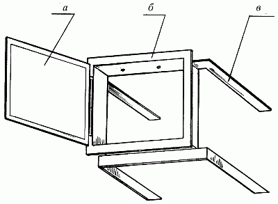 Рис. 8. Топочная дверка: а – дверка; б – рамка; в – кляммеры
