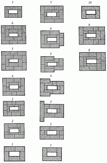 Кладка выполняется в следующем порядке: