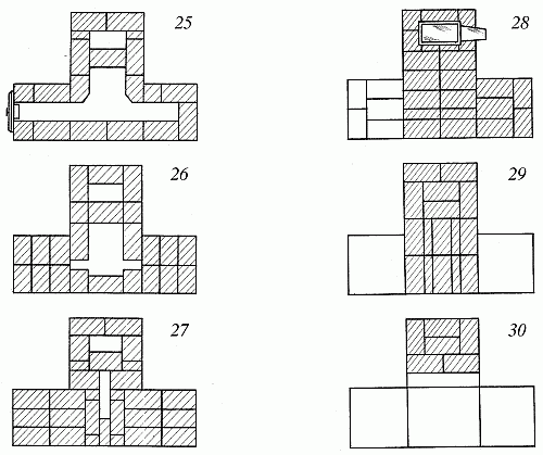 Рис. 62. Печь Т-образной формы. Последовательность кладки
