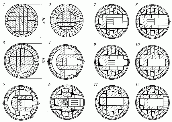 Рис. 64. Круглая печь в металлическом футляре. Последовательность кладки