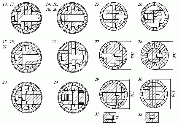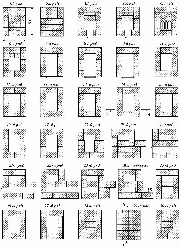30-й ряд – первый ряд кладки дымовой трубы с внутренним сечением 13 х 25 см.