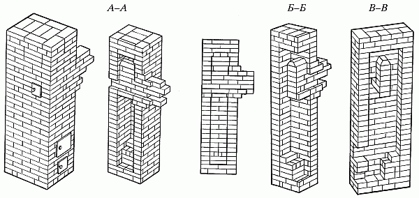 Рис. 65. Прямоугольная бесканальная отопительная печь