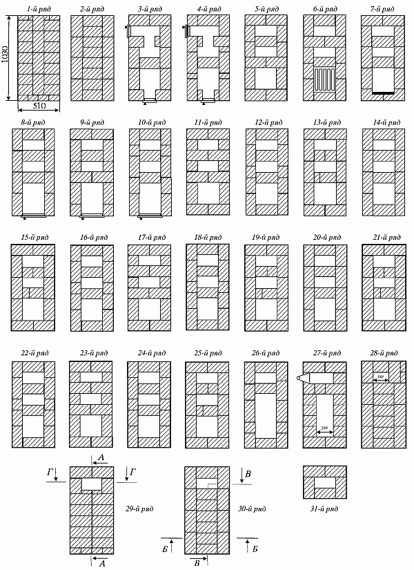 28–30-й ряды – кладка перекрыши печи.