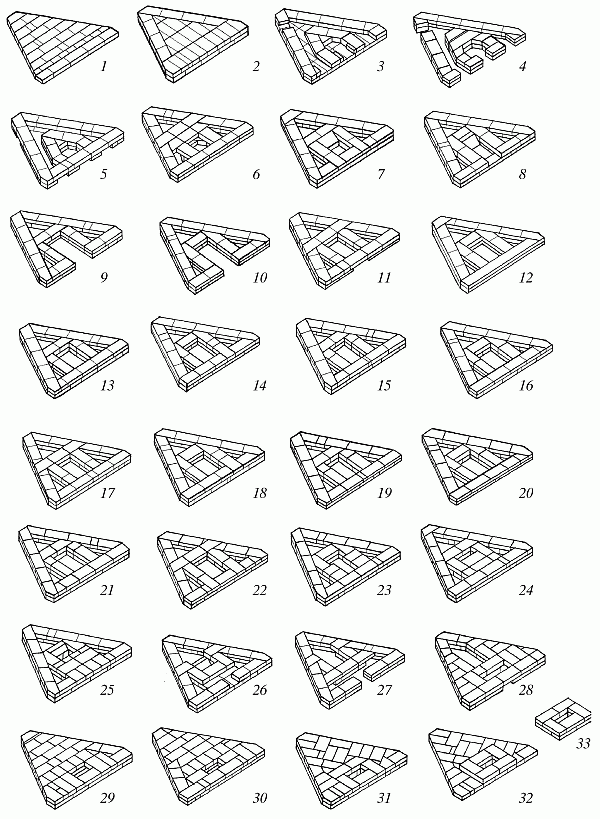30-й ряд – второй ряд перекрытия с увеличением длины и ширины кладки еще на 50 мм.