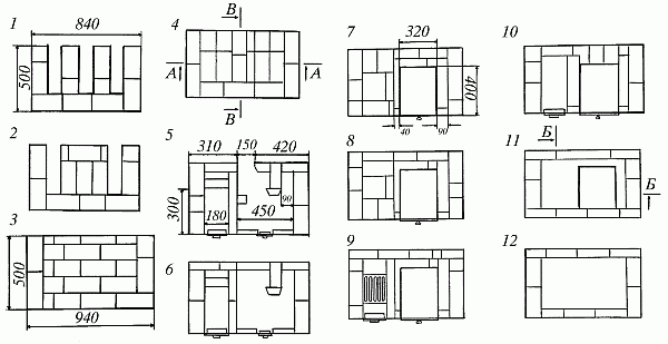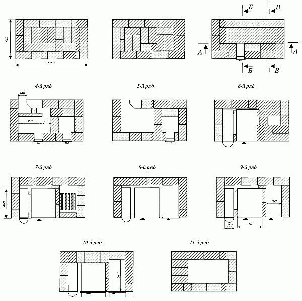 6-й ряд – перекрытие канала, ведущего к дымоходу.