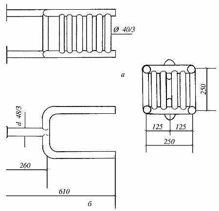 Рис. 79. Колосниковая решетка (а) и змеевик (б)