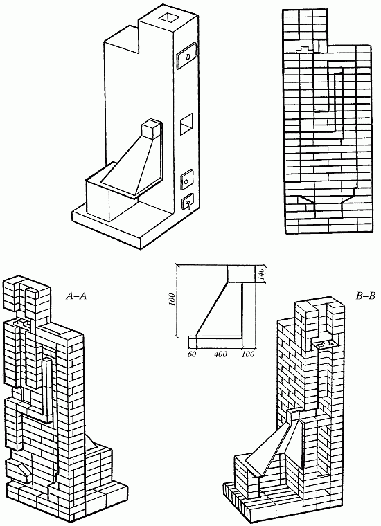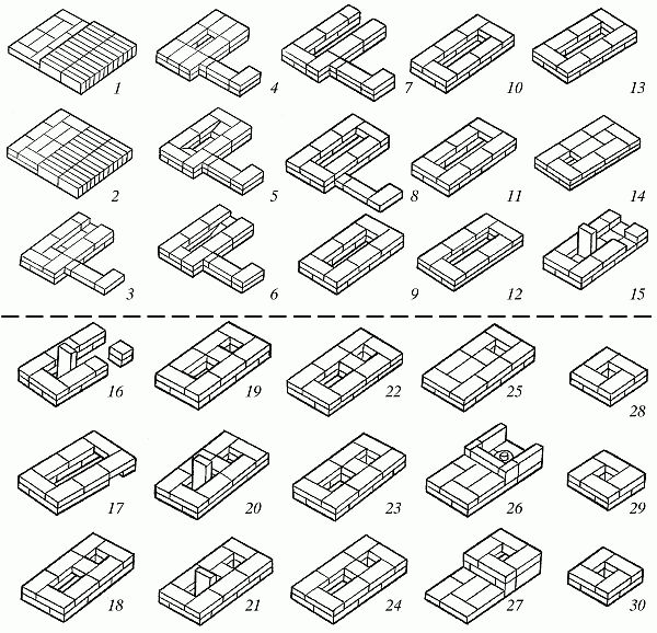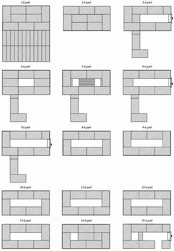 9–13-й ряды – формирование топочной камеры с соблюдением перевязки швов между четными и нечетными рядами.