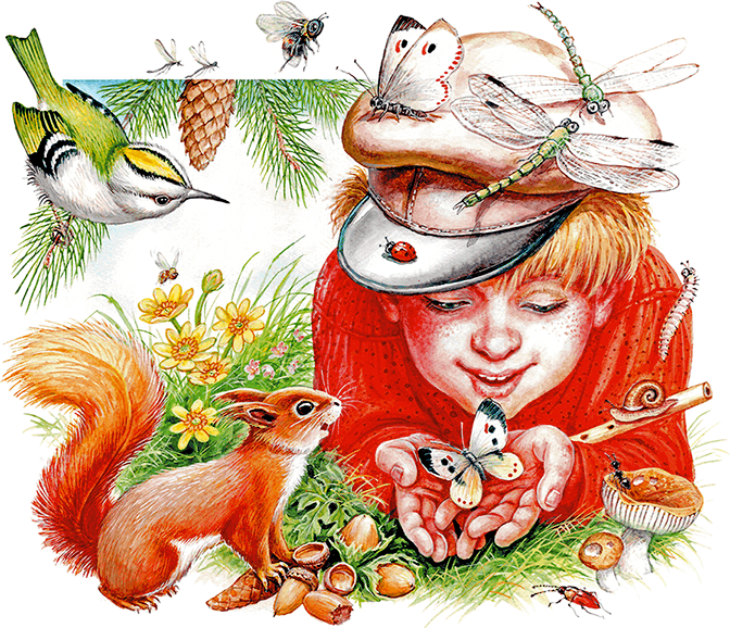 Постепенно и звери и птицы привыкли к Пете и, бывало, прислушивались по утрам: когда же запоёт за кустами его рожок? Сначала они привыкли к Пете, а потом полюбили его за то, что не озоровал: не сбивал палками гнёзд, не связывал стрекоз за лапки ниткой, не швырял в бобров камнями и не травил рыбу едучей известью.