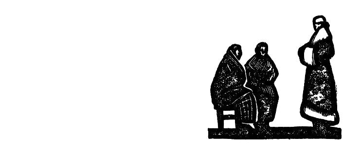 Половина четвертого того же дня. Опрятная кухня в доме Робертса. В камине едва теплится огонь. В комнате кирпичный пол, побеленные, но порядком закоптившиеся стены, мало мебели, На огне чайник. Как раз напротив камина дверь, открывающаяся вовнутрь прямо с заснеженной улицы. На столе чашка с блюдцем, чайник, нож, тарелка с хлебом и сыром. У камина, закутавшись в плед, сидит в старом кресле миссис Робертc — худенькая темноволосая женщина лет тридцати пяти с терпеливыми глазами. Волосы у нее не убраны в прическу, а лишь перехвачены сзади ленточкой. Рядом у камина — миссис Йоу, широколицая, рыжеволосая. Поближе к столу сидит седая, с землистым лицом старушка, миссис Раус. У двери, собираясь уходить, стоит, съежившись от холода, бледная миссис Балджин. За столом — Мэдж Томас, миловидная двадцатидвухлетняя девушка, у нее широкие скулы, глубоко посаженные глаза, встрепанные волосы. Она сидит неподвижно, опершись локтями на стол и положив лицо на руки, и молча прислушивается к разговору.