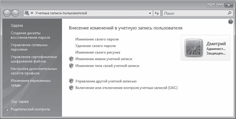 Чтобы открыть окно управления учетными записями (рис. 7.1), зайдите в меню Пуск и щелкните кнопкой мыши на значке своей учетной записи, который располагается в верхней части правого столбца.
