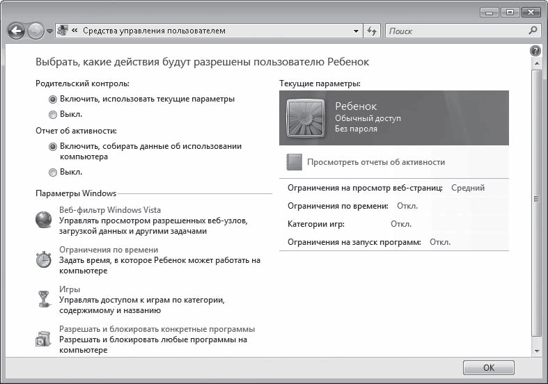 Рис. 7.3. Окно настройки параметров родительского контроля
