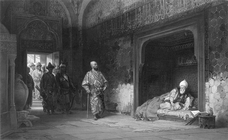 Историческая фантазия Станислава Хлебовского (он 12 лет работал придворным художником в Константинополе). Бедный турецкий султан и его азиатский друг.