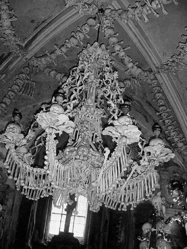 Часовня католической церкви Всех Святых в Чехии. Сделана из 40 000 человеческих скелетов.