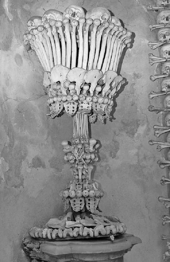 Думаю насчёт 40 000 преувеличение, но несколько тысяч точно. Костяной канделябр – в нём в качестве деталей содержатся все кости человеческого скелета.