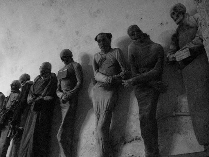 Катакомбы капуцинов в Палермо. В отличие от катакомб Неаполя или Рима это чисто христианские катакомбы, поэтому они полностью доступны для обозрения. Их стали рыть с начала 17 века. Всего тут захоронено 8 тысяч трупов, включая трупы 20 века.